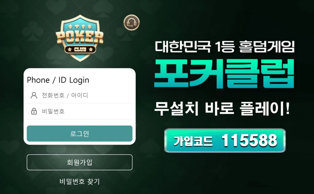 아래의 POKER CLUB 주소 또는 버튼을 클릭하면 회원가입 및 로그인을 간편하게 진행하실 수 있으며, 가입코드를 입력하면 즉시 포커클럽 게임에 참여하실 수 있습니다.
